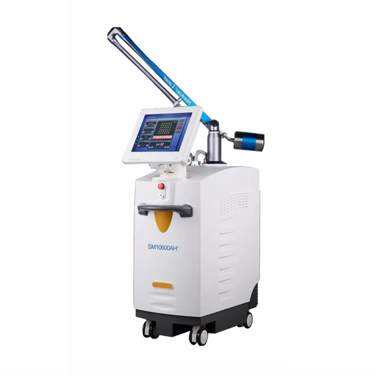 Use laser to scan and treat target tissue, heat can be transmitted from the superfical to the dermis of the skin.